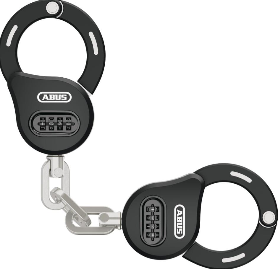 Det som ved første øyekast ser ut som klassiske håndjern, er en spesiell sikkerhetsanordning fra ABUS med avskrekkende effekt på tyver. Den herdede stålkonstruksjonen til e-scooteren og sykkellåsen sørger for at tyver foretrekker ikke å ta andres eiendom.