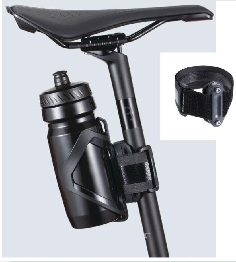 Universal stropp med borrelås som lar deg feste flaskestativ nærmest hvor som helst på sykkelen.