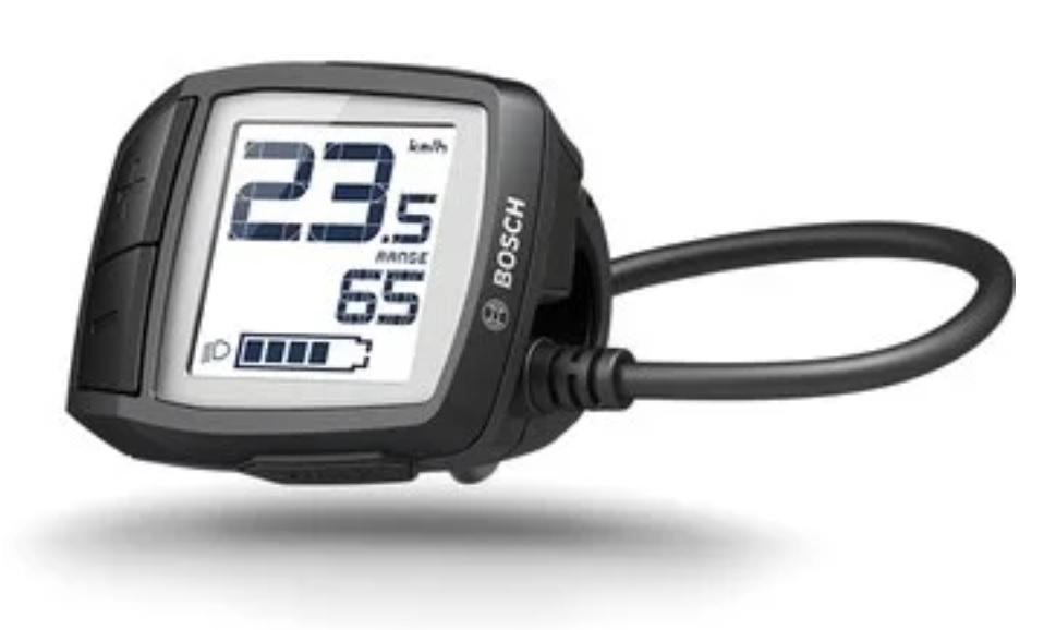 Minimalistic on-board computer concentrates on essential ride information such as riding mode, range, and trip distance