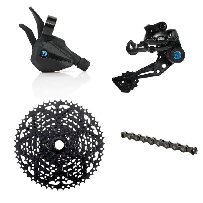 Our Box Three tier delivers many of the same capabilities of its more famous siblings yet it’s built upon a simpler platform. Cassettes are accessible at 11-46T or 11-50T and fashioned with steel spiders. The derailleur exploits our Limited Slip clutch technology without the Tri-pack features. Shift easily with a comparable mechanism, although you’ll forgo the hinged clamp and die-cast structure. And lastly, string it all together with a Prime 9 chain but without extravagant coatings. If you’re looking to bring your 2/3 by bike into the 21st century, then level up with this group!