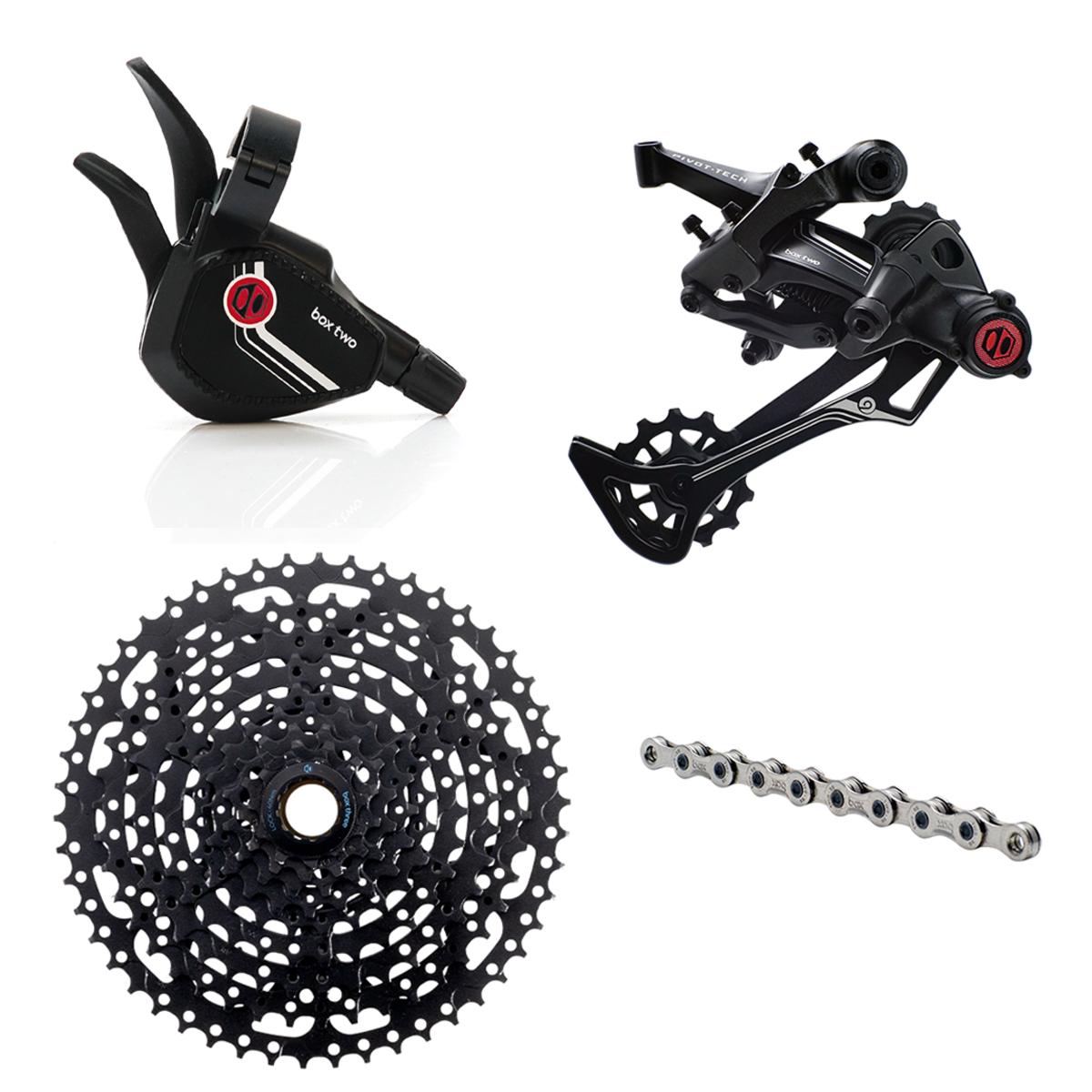 Can’t decide between the modern basics of Box Three and the long service life of Box Two? Well, you don’t need to! With this pre-configured and pre-tested option, you’ll receive a Box Three cassette paired to the durable Box Two derailleur, shifter and chain.