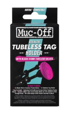 Muc-Off ventil for slangeløst oppsett inkl holder for Apple Airtag.