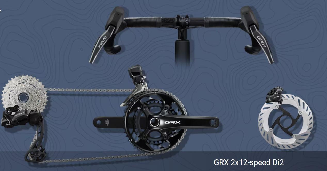 De nye 2×12-delte GRX RX825 Di2-komponentene elektrifiserer Shimanos 12-delte gruskomponentfamilie og kombinerer Shimanos suverene elektroniske giring med optimaliserte giralternativer for sykling, racing og eventyr uansett underlag og føre.