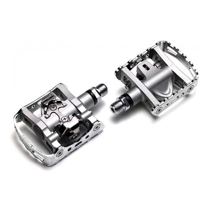 SPD-pedalene støttes av en bred plattformramme for å passe til både flate og SPD-integrerte sko.
