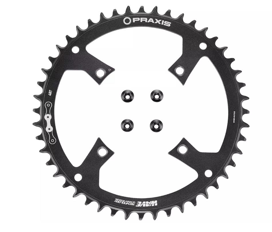 “Praxis 48T wave-tooth chainring for various model Turbo bikes equipped with a 104-BCD spider.