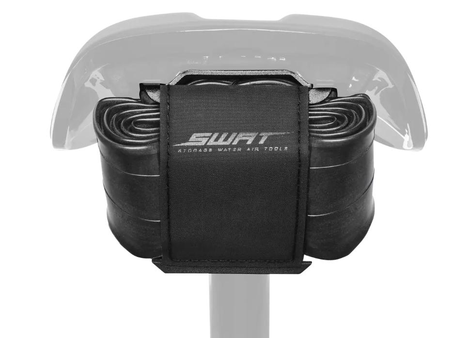 “Så du liker å holde sykkeloppsettet minimalistisk, men praktisk? Kanskje du foretrekker å tape en reserveslange og CO2 til rammen for å holde profil og vekt lav? Bandit er det beste fra begge verdener når det gjelder enkelhet og nytte for terrengsyklister. Dens kompakte form boltes under ditt SWAT-kompatible sete og har en enkel, borrelåsstropp med individuelle rom for slange, CO2 og dekkspak. Ett rykk i stroppen og du har enkel tilgang til alt du trenger for å fikse en punktering midt i et løp, når tiden er knapp.