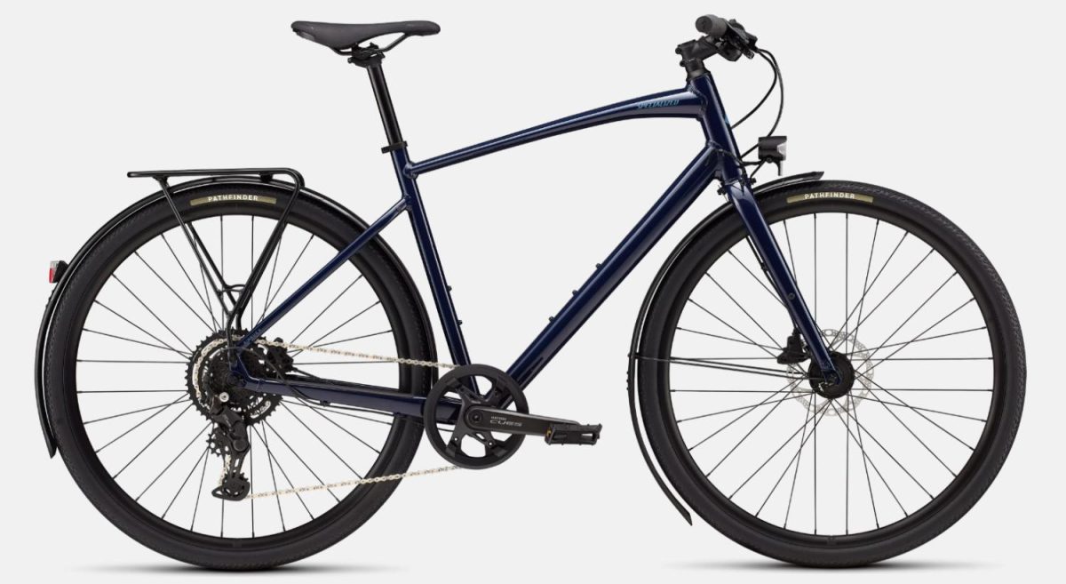 Specialized A1 Premium Aluminum, Fitness Geometry, butted tubing, internal cable routing, flat-mount disc, quick-release, Plug + Play rack/fender mounts