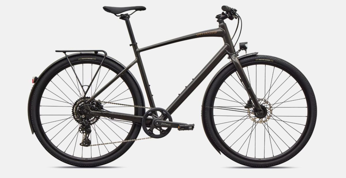 Specialized A1 Premium Aluminum, Fitness Geometry, butted tubing, internal cable routing, flat-mount disc, quick-release, Plug + Play rack/fender mounts