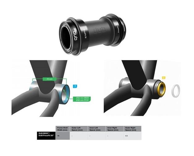 SRAM Bottom bracket DUB PressFit 30, 68/73 mm Standard bearings DUB 68-73 mm (73 mm Road wide)