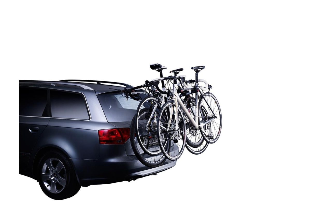 Baklukemontert sykkelstativ som er enkelt å montere og utformet for stasjonsvogner og kombibiler (for tre sykler).