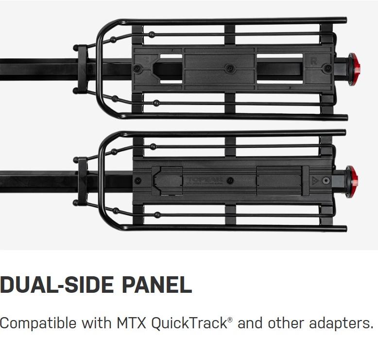Den nydesignede forlengede og utvidede versjonen av MTX BEAMRACK er mer egnet for 29″ terrengsykler og gravel-sykler. Den har en MTX QuiCkTrack®-kompatibel paneldesign, med en lastekapasitet på 9 kg. Mål: 53.9x12x12.9 cm. Vekt 722 g.