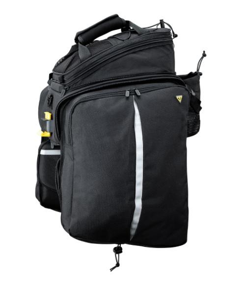 The MTX TrunkBag uses a unique material process to provide our largest, stiffest, and most weather resistant MTX series bag. In addition to the expandable top section and rear water bottle holder, the side panels expand to full panniers maximizing capacity. Compatible with all MTX QuickTrack® racks with attachable side frames. MTX Dual Side Frames are required when using panniers on MTX BeamRacks.