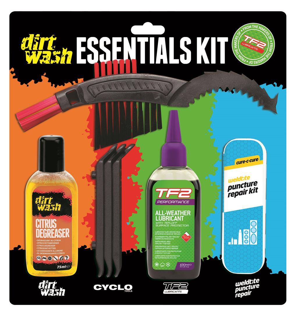 All the essentials you need to keep your bike clean and lubricated. Includes: • TF2 All-Weather Lube with Teflon™ surface protector (100ml) • Chain Degreaser (75ml) • Sprocket Brush • Cure-C-Cure Puncture Repair Kit • Cyclo Tyre Levers (3)